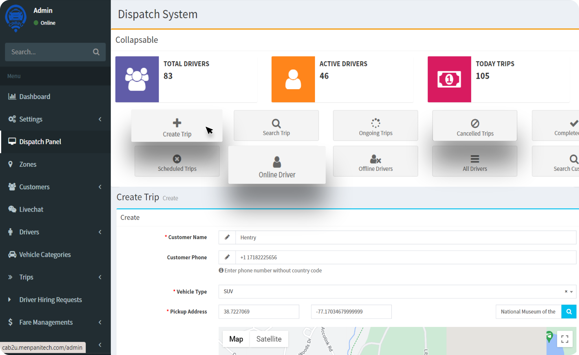 Dispatch panel used to create a trip from admin panel. Also to filter out some specific information from the admin panel and display those.